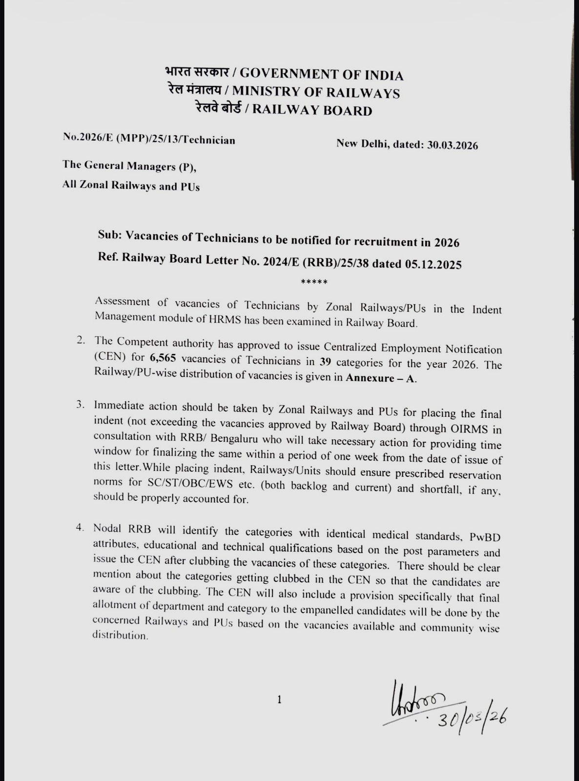 - Railway Board Short Notice: 30/03/2026