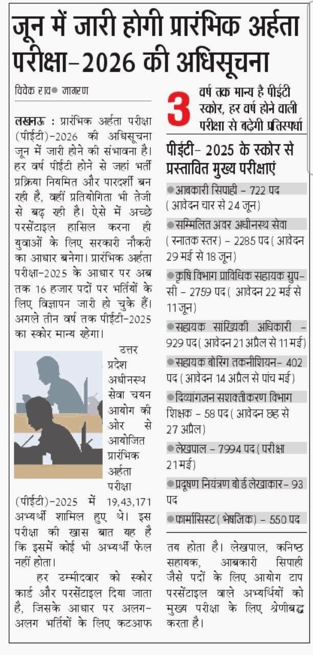 рдЙрддреНрддрд░ рдкреНрд░рджреЗрд╢ рдЕрдзреАрдирд╕реНрде рд╕реЗрд╡рд╛ рдЪрдпрди рдЖрдпреЛрдЧ (UPSSSC) рджреНрд╡рд╛рд░рд╛ рд╣рд░ рд╕рд╛рд▓ рдЖрдпреЛрдЬрд┐рдд рдХреА рдЬрд╛рдиреЗ рд╡рд╛рд▓реА рдкреНрд░рд╛рд░рдВрднрд┐рдХ рдЕрд░реНрд╣рддрд╛ рдкрд░реАрдХреНрд╖рд╛ (Preliminary Eligibility Test – PET) 2026 рдХреА рддреИрдпрд╛рд░рд┐рдпрд╛рдВ рд╢реБрд░реВ рд╣реЛ рдЪреБрдХреА рд╣реИрдВред рдореАрдбрд┐рдпрд╛ рд░рд┐рдкреЛрд░реНрдЯреНрд╕ рдФрд░ рдЖрдпреЛрдЧ рдХреА рдХрд╛рд░реНрдпрдкреНрд░рдгрд╛рд▓реА рдХреЗ рдЕрдиреБрд╕рд╛рд░, PET 2026 рдХрд╛ рдЖрдзрд┐рдХрд╛рд░рд┐рдХ рд╡рд┐рдЬреНрдЮрд╛рдкрди рдЬреВрди 2026 рдореЗрдВ рдЬрд╛рд░реА рдХрд┐рдП рдЬрд╛рдиреЗ рдХреА рдкреВрд░реА рд╕рдВрднрд╛рд╡рдирд╛ рд╣реИред